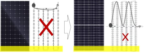 en caso de que la parte parte superior o inferior sea sombreada de forma horizontal, su rendimiento bajará al 50% y no completamente como un módulo tradicional.