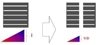 Cortar una celda en dos partes reduce la capacidad de corriente interna a la mitad, lo que reduce la pérdida de potencia. Sin embargo, la pérdida de potencia es proporcional al cuadrado de la corriente. La pérdida de potencia en una media celda, por lo tanto, se reduce en un factor de cuatro. Al reducir la pérdida de potencia, aumenta el factor de llenado, lo que mejora la capacidad de la celda para producir más corriente a partir de la luz existente.